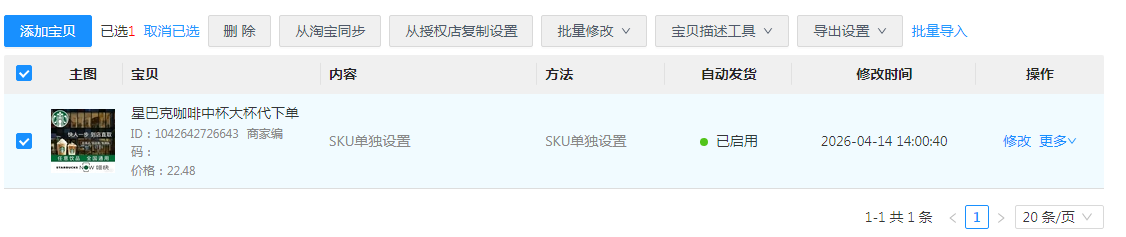 宝贝设置—添加—勾选要自动发货的宝贝确认